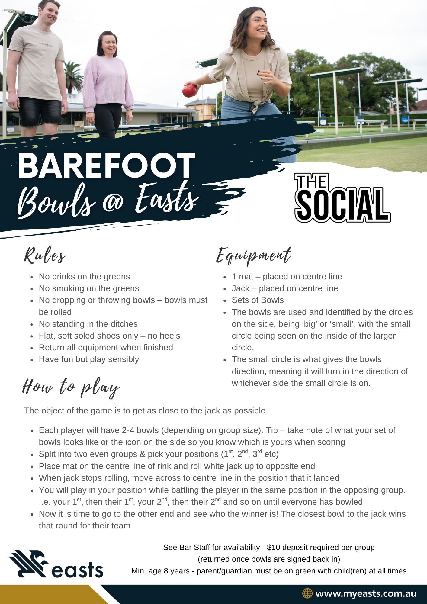 We are delighted to offer FREE Barefoot Bowls on our Social Green!